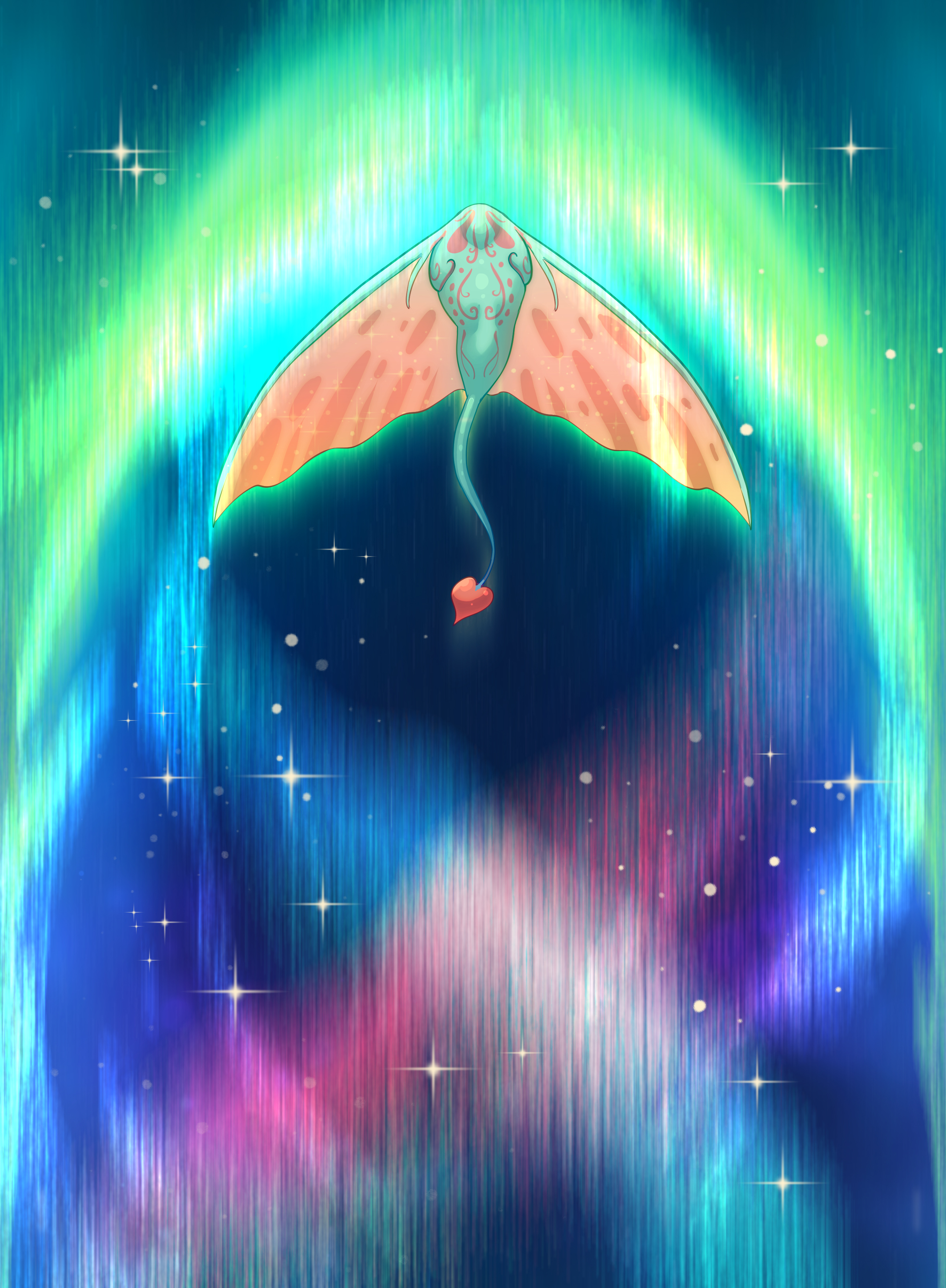 หางเรืองแสงของมันส่องประกายวาววับในห้วงมืดราวเปลวไฟสีน้ำแข็ง