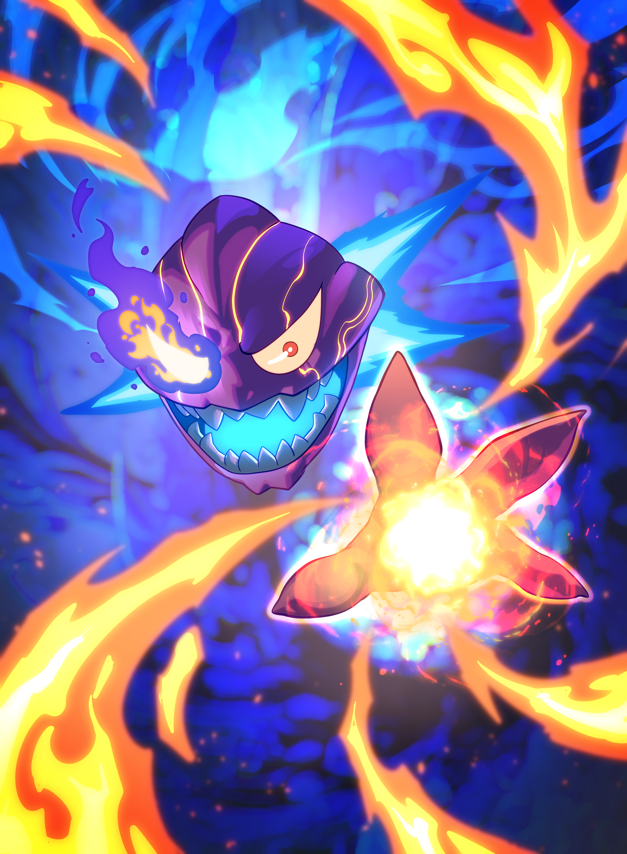 ร่างกายของมันแฝงด้วยประกายไฟสีน้ำเงิน และเพลิงสีแดง
