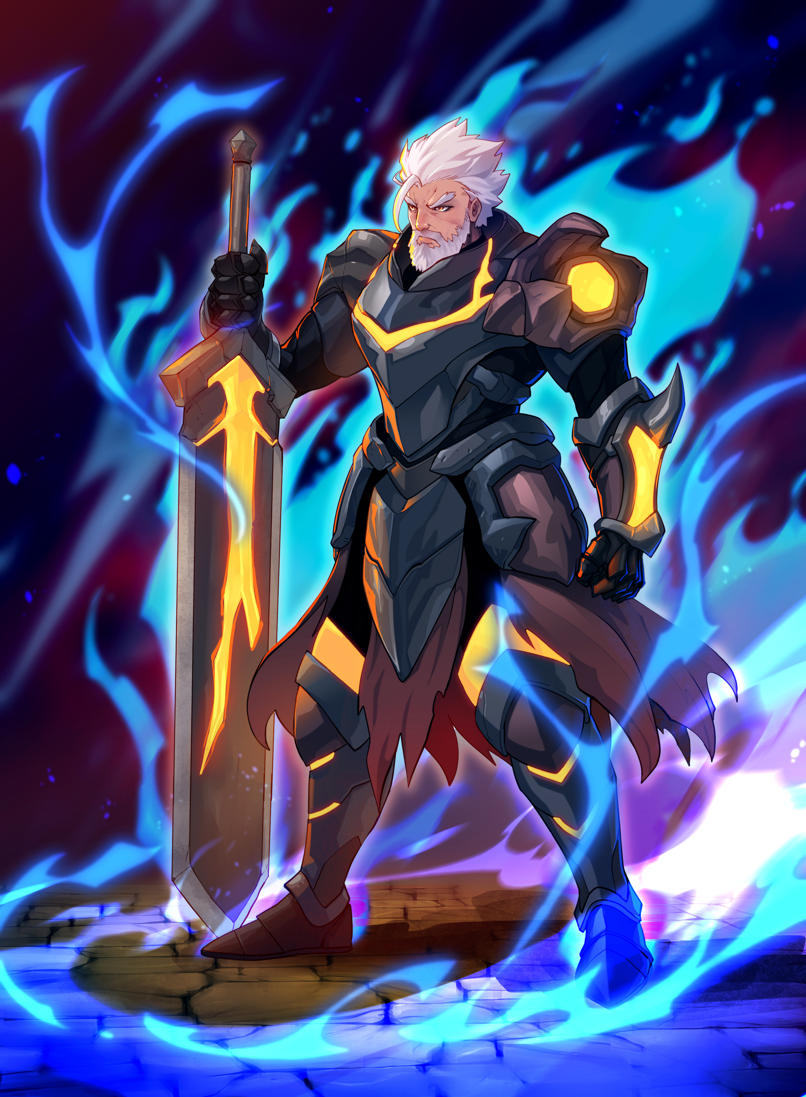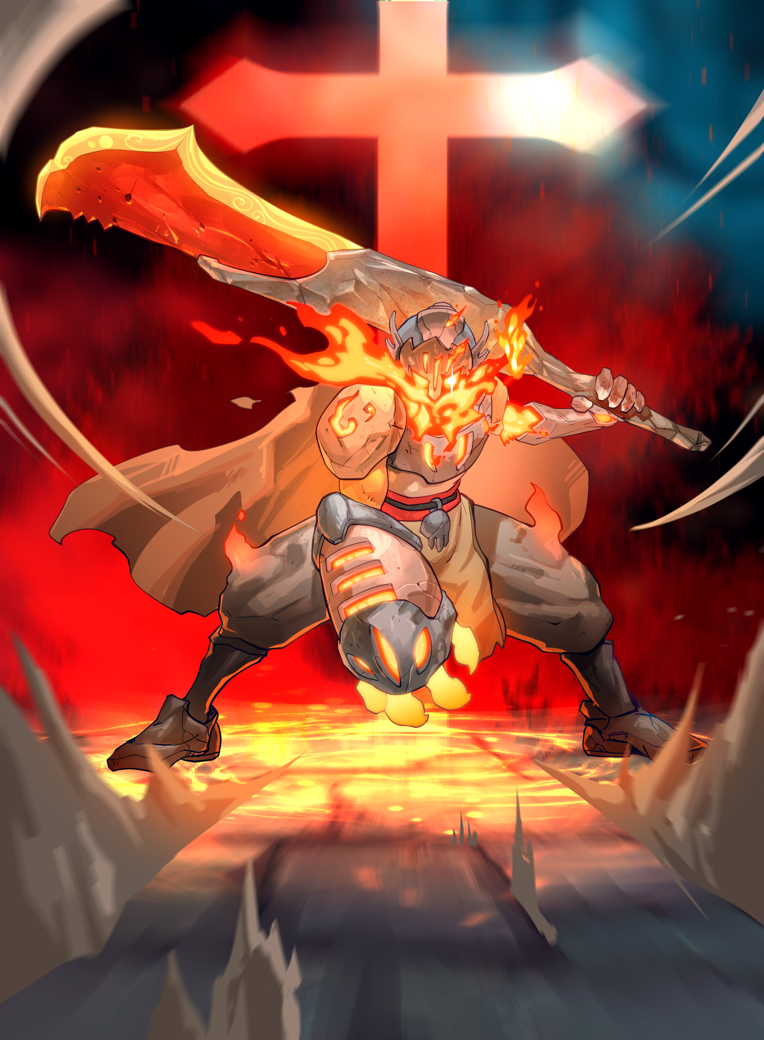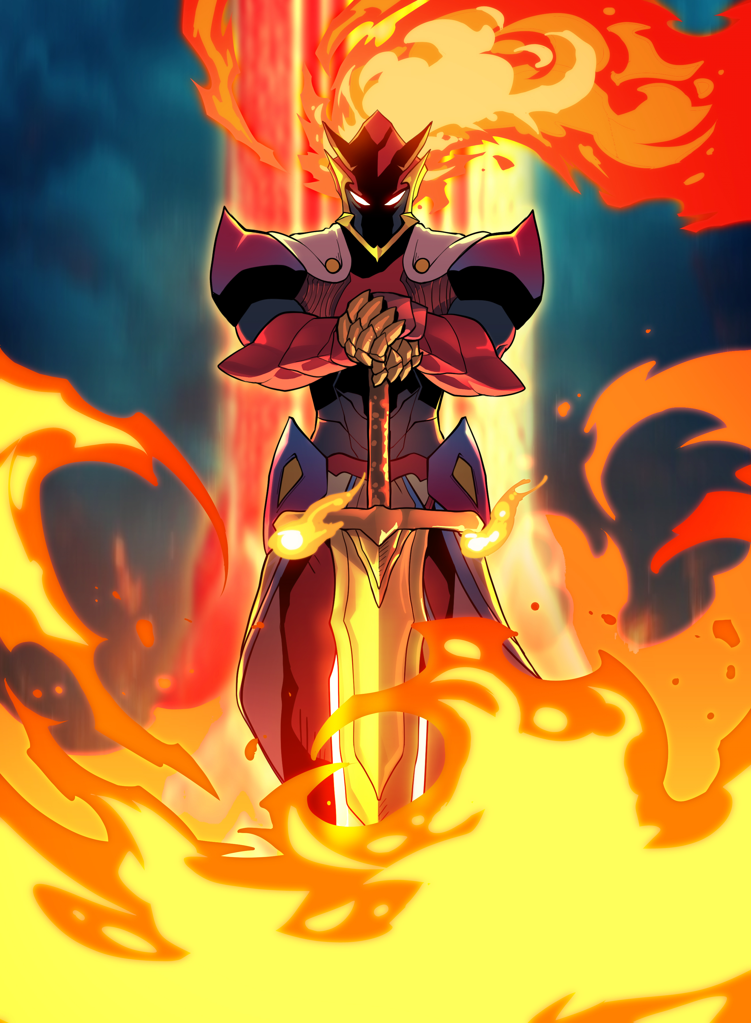 ด้วยดาบเพลิงในมือ เขาเปรียบเสมือนเสาหลักที่ไม่เคยหวั่นไหว